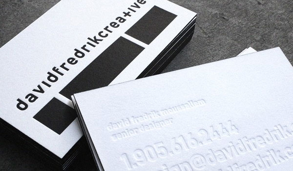 Cartão de visita com impressão tipográfica de baixo e alto relevo.