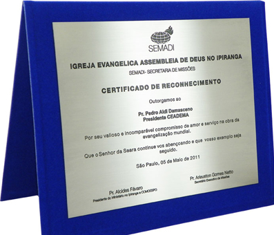 Placas de homenagens coloridas rj-com estojos de veludo.