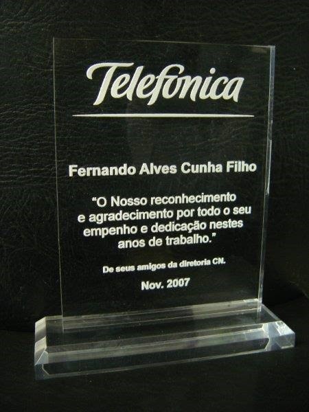 Placas de homenagens acrílico com impressão a laser